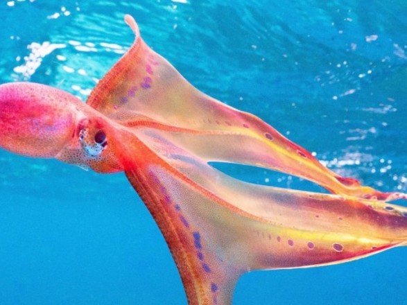 Рідкісний ковдроподібний восьминіг, який мешкає у відкритому океані, був помічений на мілководді біля острова Леді Елліот.