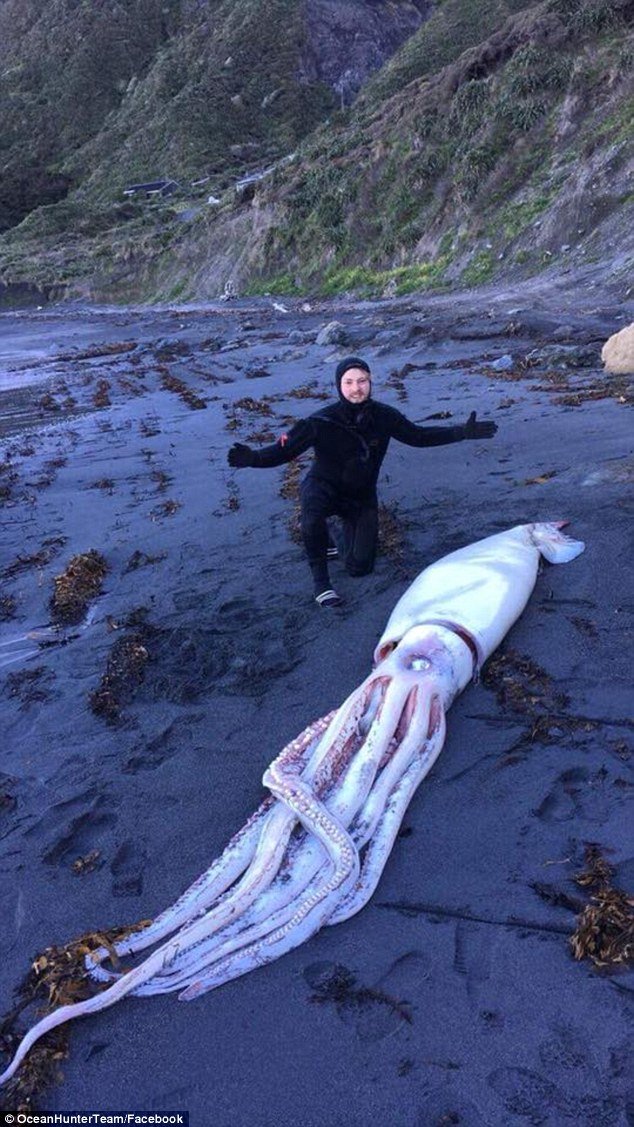 Велосипедисти, які подорожують по Новій Зеландії, знайшли на пляжі кальмара завдовжки понад чотири метри.