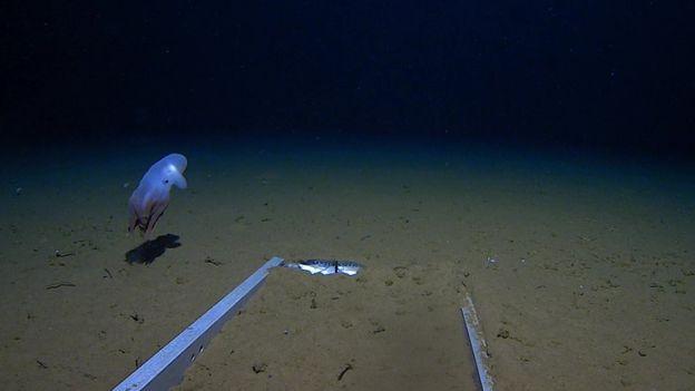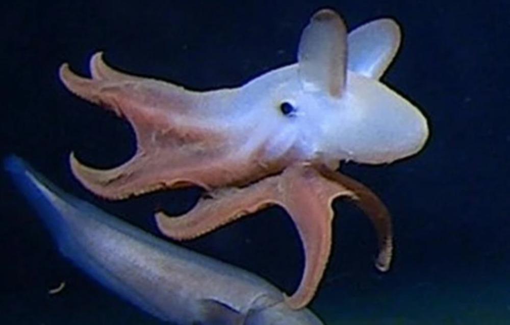 Майже на самому дні найглибшого жолоба у східній частині Індійського океану морські біологи виявили восьминога роду гримпотевтис, або «восьминога Дамбо».