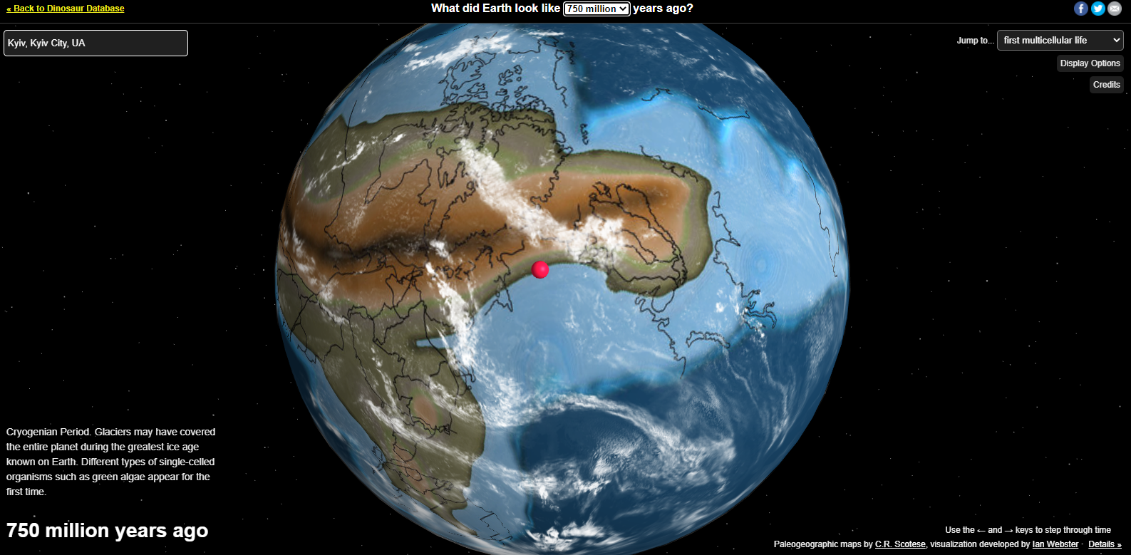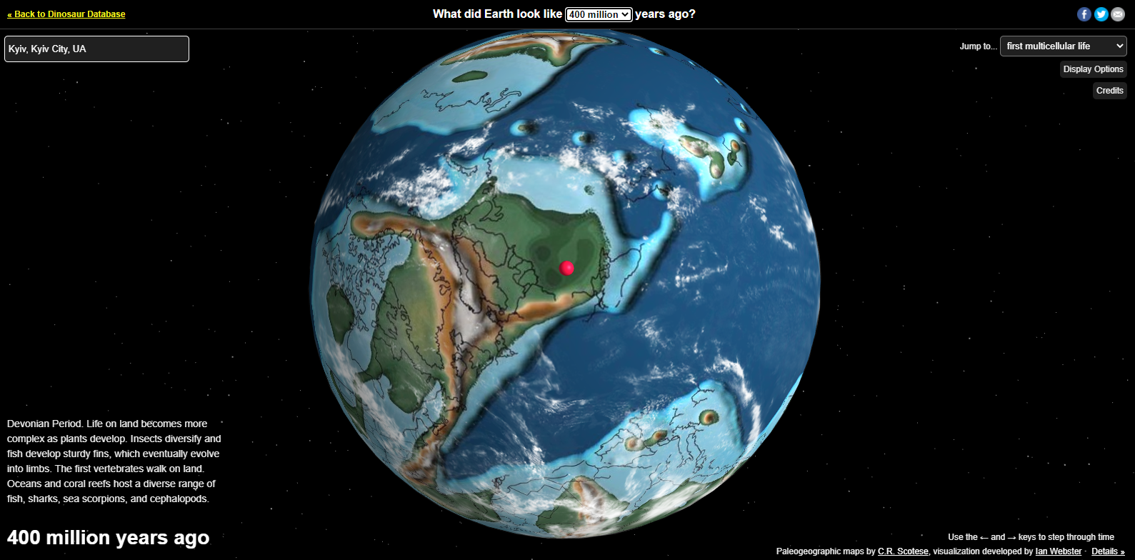 Онлайн-мапа, розроблена Яном Вебстером, містить низку інструментів, які також дозволяють легко дізнатися більше про Землю, наприклад, де жили перші рептилії або коли розпустилася перша квітка.