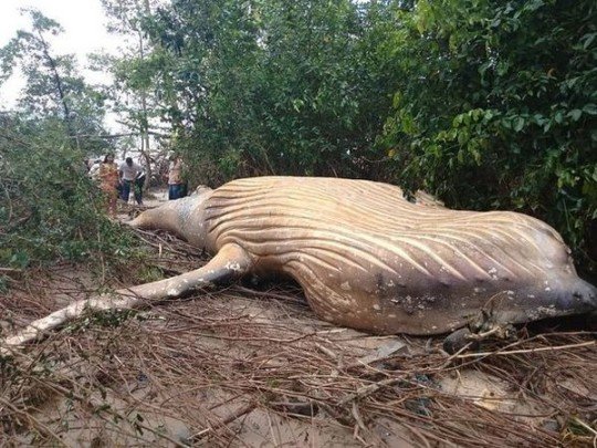 Бразильські вчені виявили серед джунглів на найбільшому острові країни Маражо десятитонне тіло дитинчати горбатого кита довжиною 11 метрів.