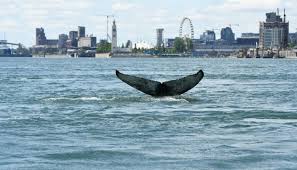 Подивитися на кита, який щокілька хвилин пірнає глибше, показуючи свого могутнього хвоста, або випускає хвилі води при видиху, поблизу старого порту Монреаля зібралося багато охочих місцевих жителів.