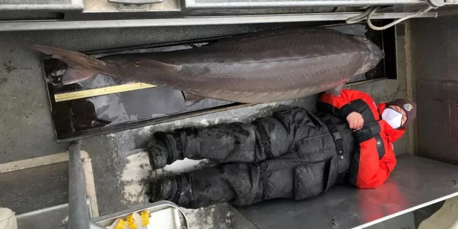 Світ вражає: Двометрова риба: у річці Детройт виловили величезного осетра віком понад сто років