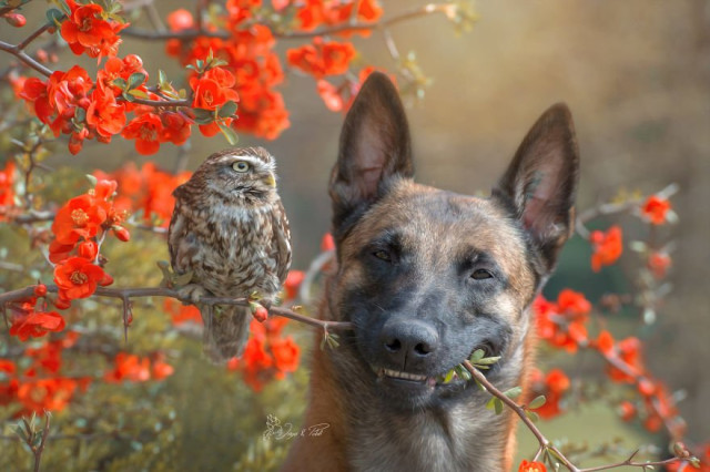 Світ вражає: Фотограф показав неймовірну дружбу собаки Інго та сови Полді