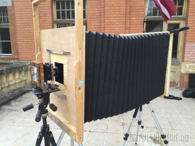 Роком раніше він спорудив величезну камеру-обскуру. Для неї він дістав у одного 20-дюймовий військовий об'єктив. Потім він організував імпровізовану студію і проявну в підвалі одного з латвійських замків.