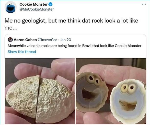 Яйцеподібний агат приховав усередині смішне обличчя – разюче схоже на мультиплікаційного персонажа Коржика (Cookie Monster) з «Вулиці Сезам».
