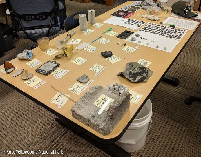 Коли хмара пари після виверження розсіялася, стало зрозуміло, що гейзер виніс на поверхню сміття, який роками знаходився в джерелі.