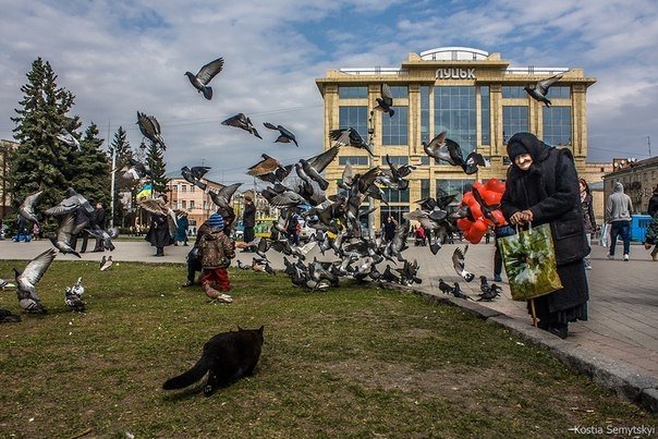 «У центрі Луцька можна побачити зворушливу картину, де бабуся годує голубів. Видно що людина дуже добра, бо голуби чекають на неї і як бачать, то злітаються звідусюди, і їдять просто з її рук», - розповідає лучанин Костянтин Семицький.