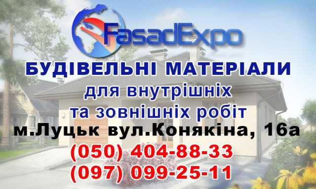 ТОВ «Фасад Експо» пропонує великий вибір якісних матеріалів для утеплення й оздоблення фасадів, матеріали для внутрішніх робіт (гіпсокартон, шпаклівки, клеї, фарби), метизи, ручні інструменти та багато іншого.