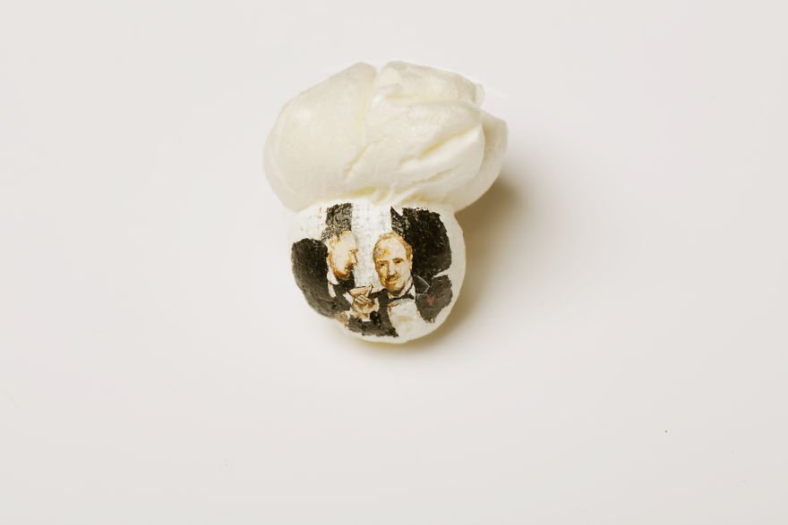 Доволі незвичне поєднання найорганічніших для західної культури речей – кіномистецтва та попкорну – винайшов 57-річний турецький художник Хасан Кейл. Він малює персонажів із фільмів на зернинах попкорну.