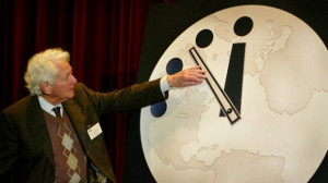 Стрілки годинника Судного дня вказують символічний час, що залишився до катастрофи планетарного масштабу. Його створили в 1947 році американські вчені і редколегія журналу Bulletin of Atomic Scientists. Приводом до запуску проекту стало падіння бомб на Хіросіму і Нагасакі. Тоді він показував час 23:53.