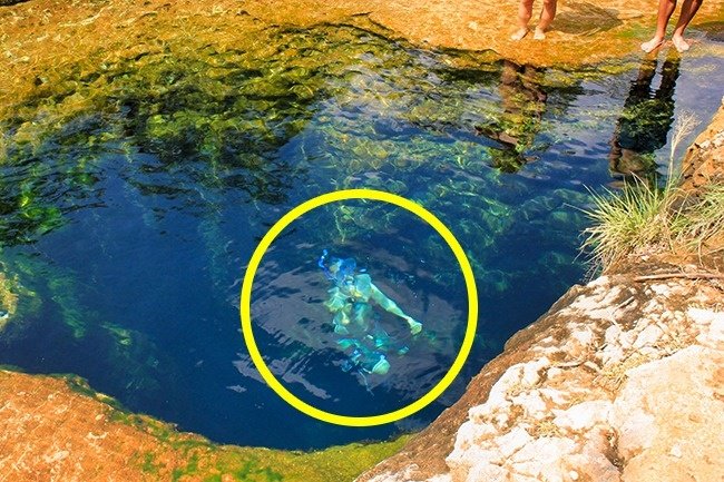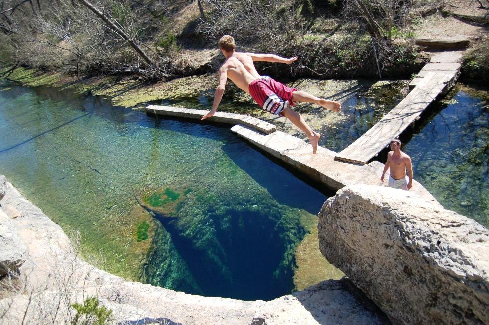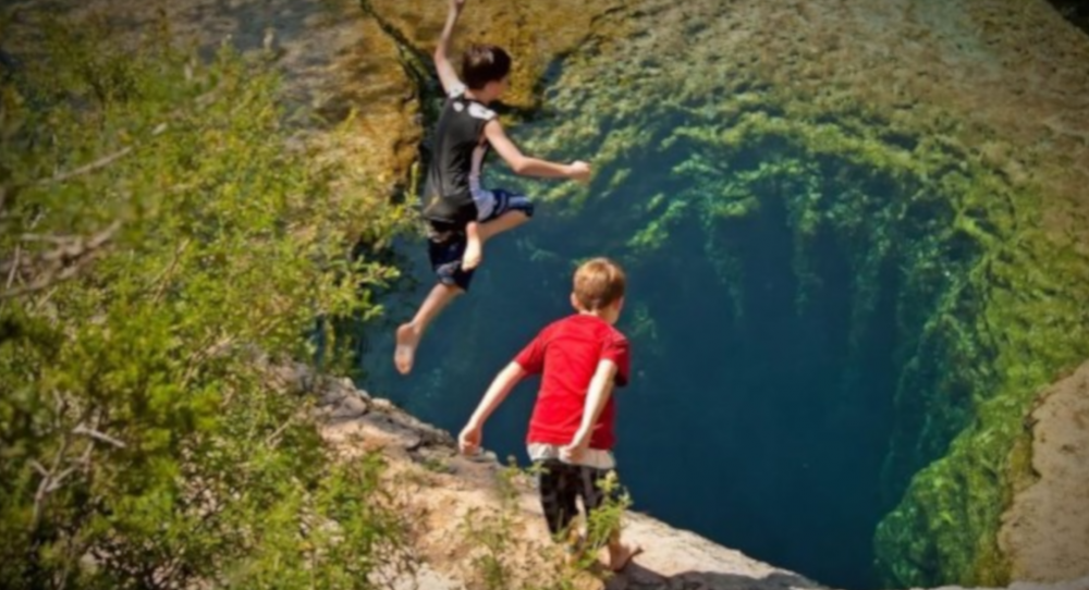 На фотографії два хлопчика стрибають в безодню - це колодязь Якова, який знаходиться в штаті Техас, США.