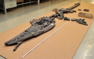 У Китаї на території провінції Гуйчжоу фахівці виявили скам’янілі останки п’ятиметрового іхтіозавра, який подавився чотириметровим морським ящером талаттозавром.