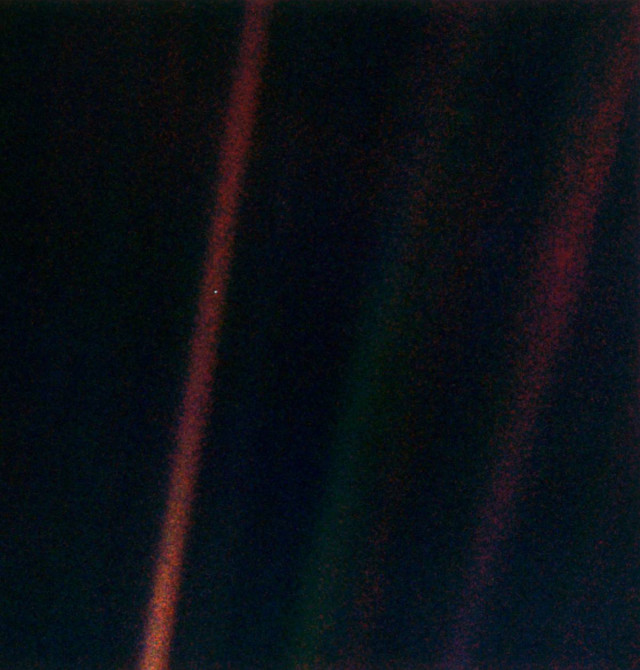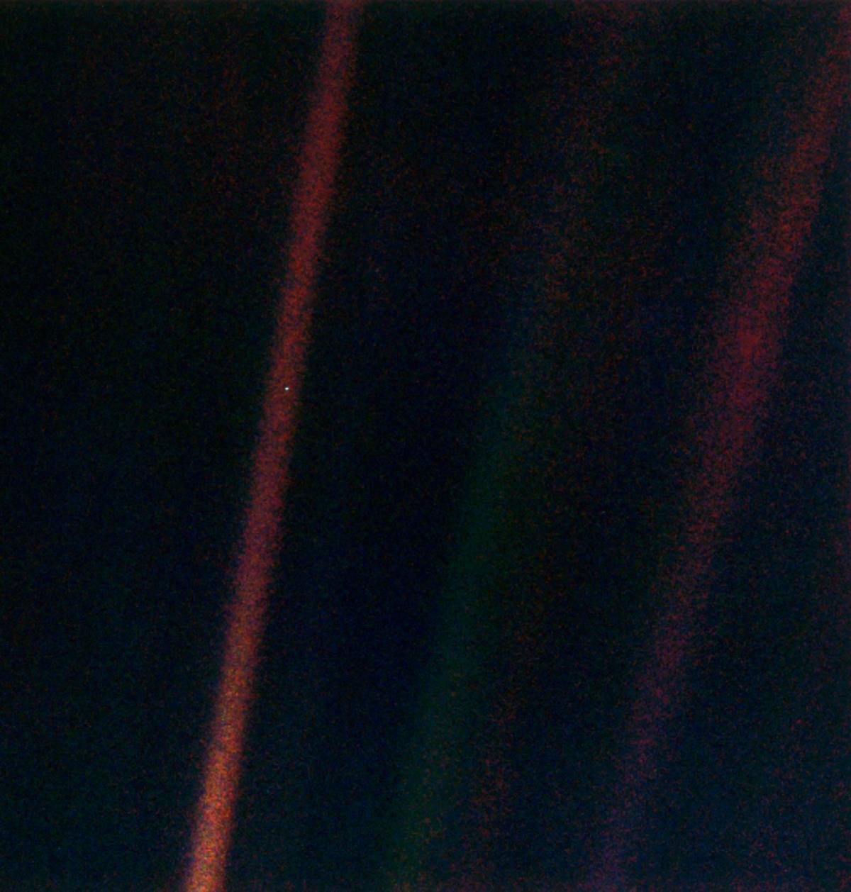 Зонд, який знаходиться у русі вже понад 40 років, покладається на невеликі прискорювачі, що допомагають йому змінювати орієнтацію у просторі та підтримувати зв’язок з Землею. Ці двигуни вистрілюють короткими імпульсами, схожими на “пшик”, і які тривають лічені мілісекунди. Подібні маневри допомагали точно переорієнтувати апарат так, щоби його антена дивилась у напрямку “блідої блакитної цятки” – Землі.“Бліда блакитна цятка” Вояджера-1. Фото Землі, зроблене зондом Вояджер-1 з відстані близько 6 мільярдів кілометрів. Ідея зробити знімок та назва були запропоновані Карлом Саганом, який також написав однойменну книгу про цей знімок у 1994 році. Джерело: NASA/JPL.