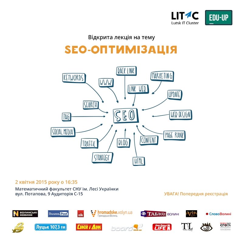 Проект Луцького ІТ-кластеру Edu up: Лекція для студентів на тему "SEO-оптимізація", рекомендації, чорне/біле/сіре SEO.