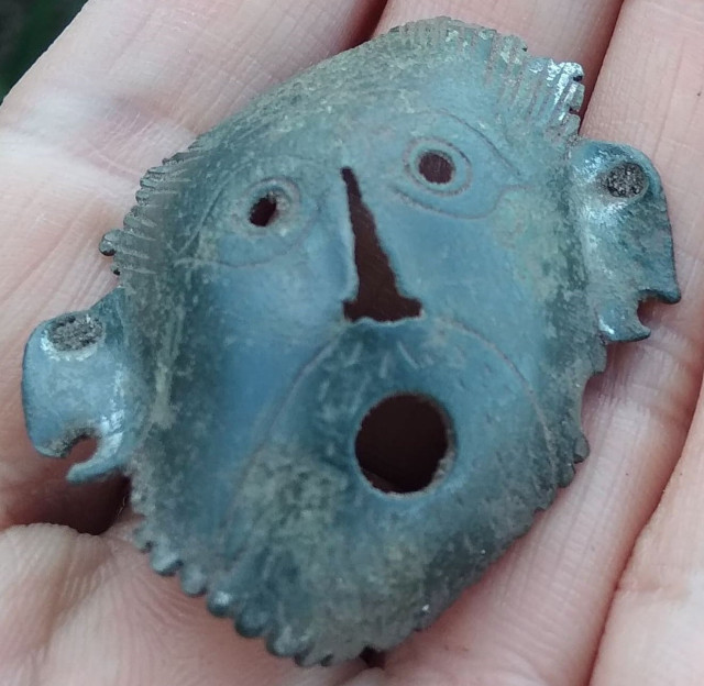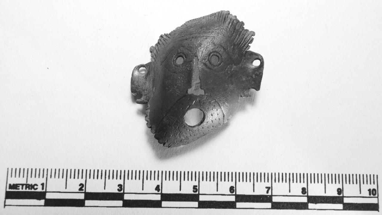За словами провідного археолога Якуба Аффельського, свинцевий артефакт – це, можливо, незвичайна печатка. З іншого боку, мідна аплікація-маска можливо була використана як прикраса для одягу, наприклад, пряжка для поясу, як видно з отворів для кріпення. Вражає точний дизайн цього мистецького витвору – видно вуха, чітко позначені очі, борода та волосся.