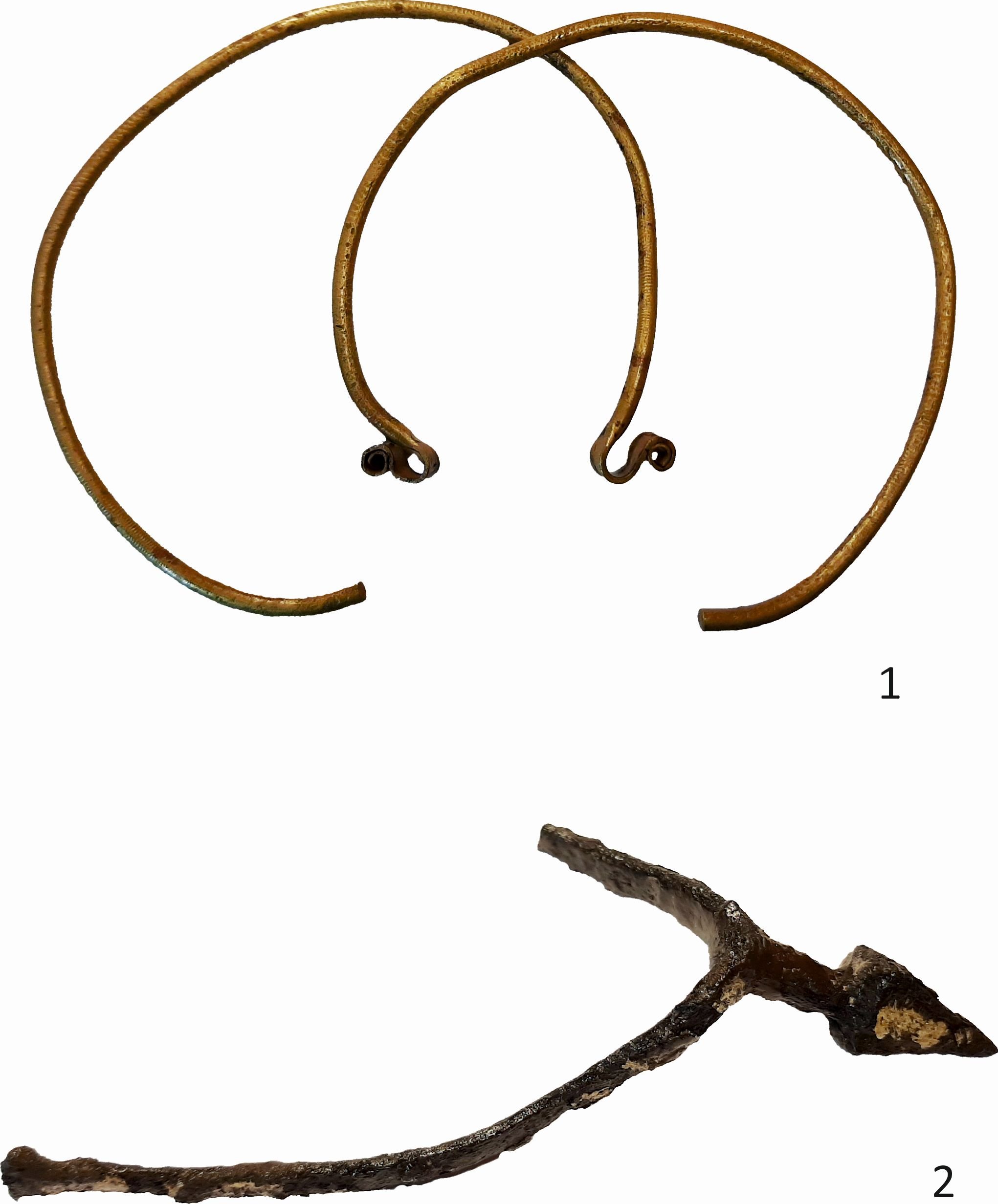 Особливо варто відзначити два артефакти: маску з мідного сплаву у формі здивованого обличчя та невелику свинцеву пластинку у формі спокійного, сплячого, задоволеного обличчя. Можливо це була печатка. Натомість мідну маску, мабуть, використовували як пряжку ременя для одягу. Вона має чіткі монтажні отвори на вухах.