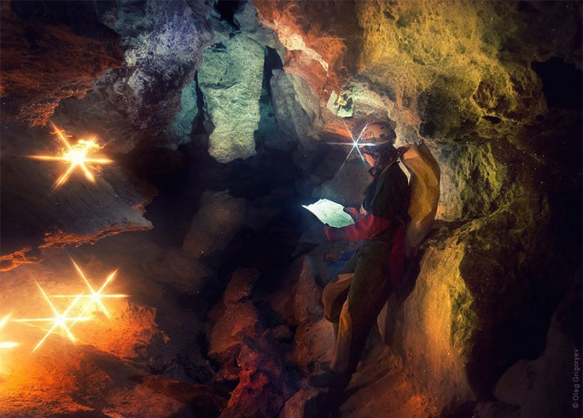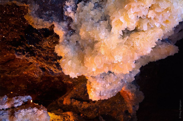 "Зрозуміти ці назви можливо тільки після того, як сам проповзеш їх, - каже фотограф. - Печерна атмосфера підземного світу - це мільйони маленьких кристалів на стінах, які виблискують як зірки. Дуже чарівне видовище. Досить складно описати свої емоції і передати за допомогою фотографії об'єми і простори печери, неймовірну красу залів і галерей. Гіпсові кристали грають усіма барвами у світлі ліхтарів і свічок, ніби невеликі всесвіти - це потрібно хоча б раз побачити самому".