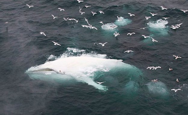 Біля берега мексиканського півострова Каліфорнія в Тихому океані біологи помітили дивного кита-альбіноса.