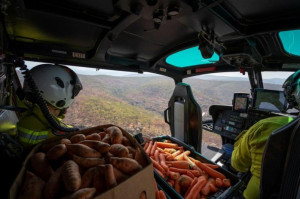 Овочі розкидали з вертольота в важкодоступних місцях, де вирували лісові пожежі.