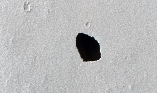 Космічні апарати NASA раніше вже фіксували подібні отвори. Наприклад, в 2012 році марсіанський супутник MRO зняв кілька вертикальних входів в передбачувані печери діаметром до 225 метрів.