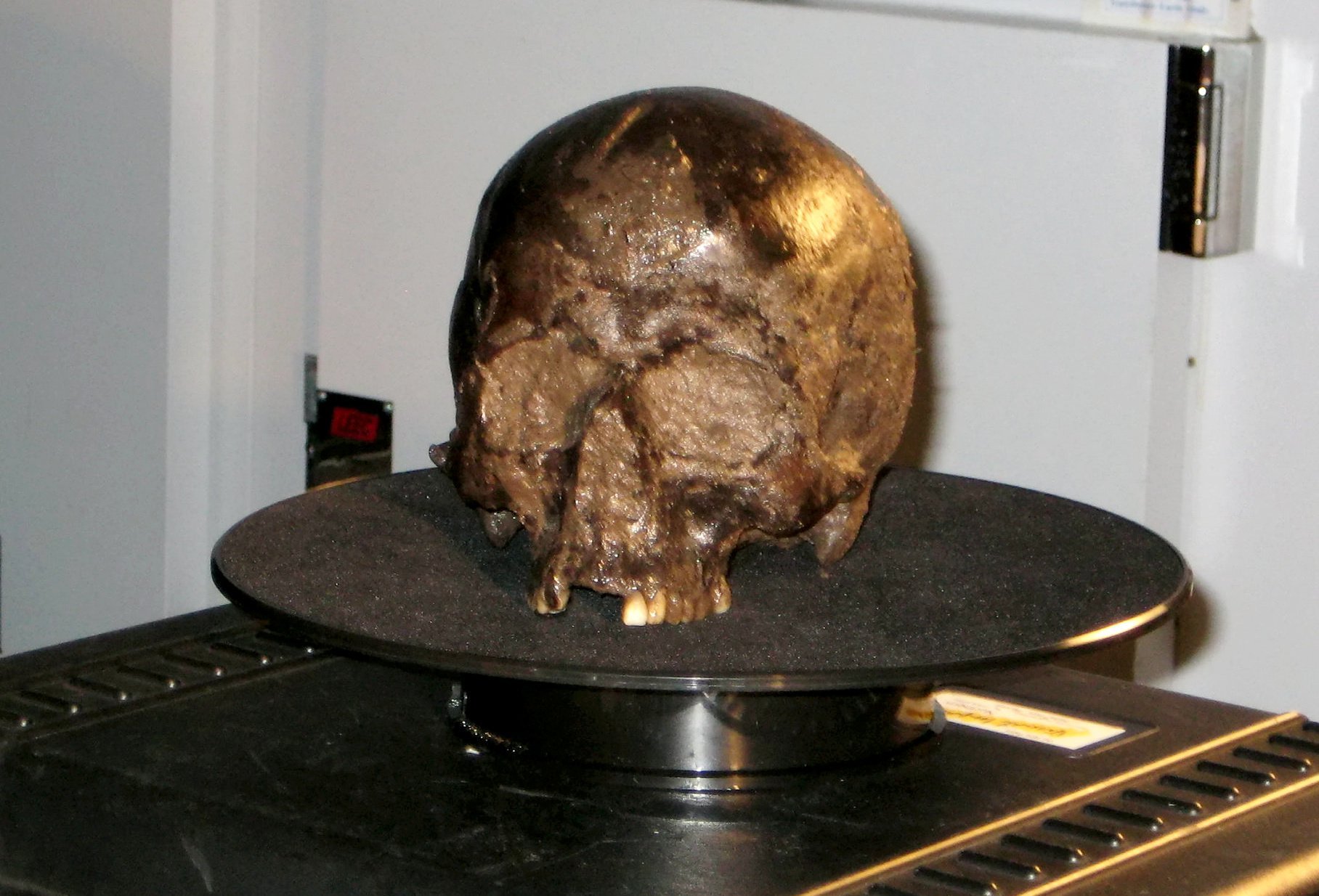 Рештки мозку піддали радіо вуглецевому дослідженню. Його вік датували 673-482 рр. до н.е. Тоді ця людина отримала сильний удар по голові або шиї, а потім її обезголовили, про що свідчать пошкодження шийних хребців і черепа.