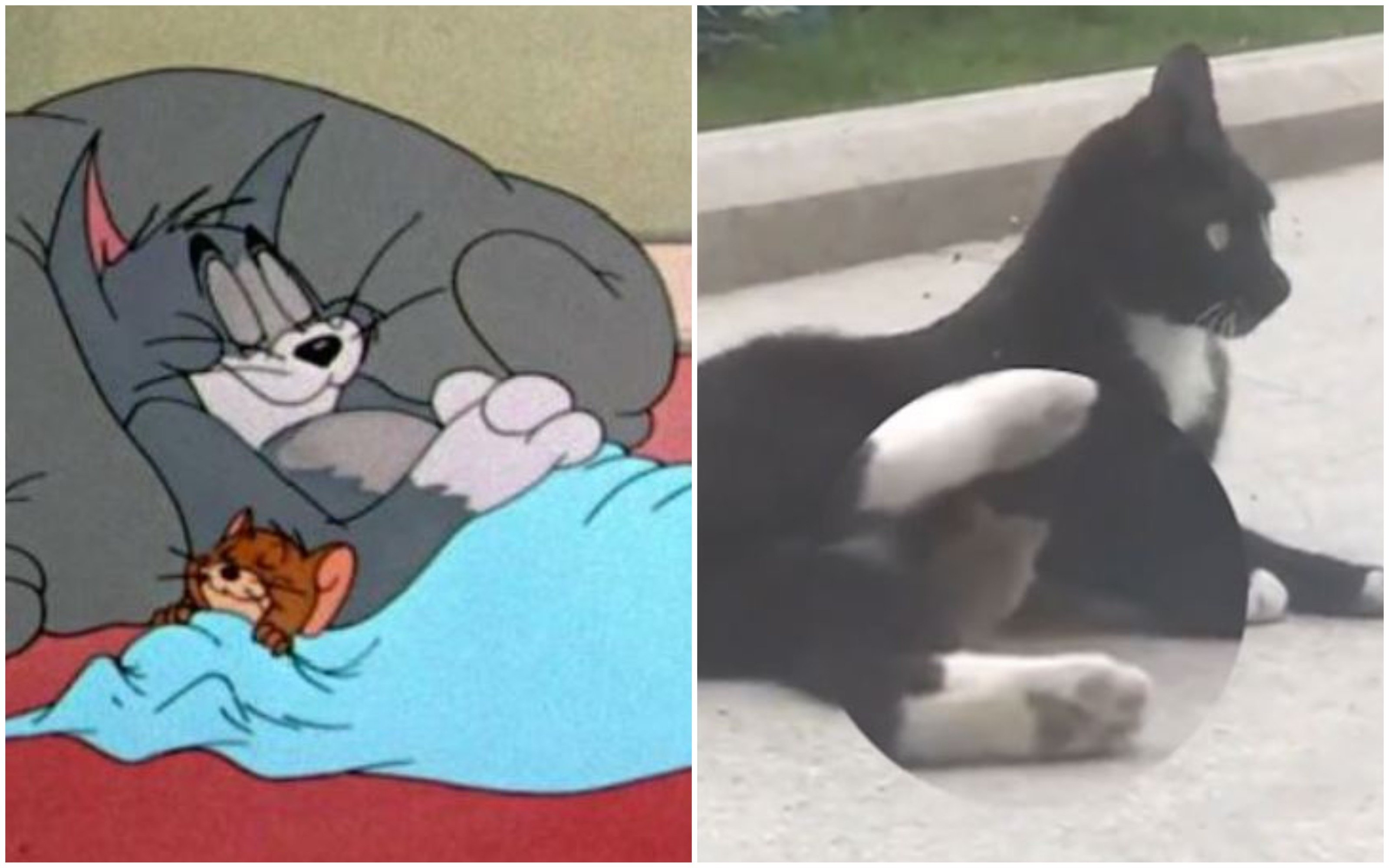 Вони пишуть, що цей милий дует нагадує їм головних героїв легендарного мультфільму «Том і Джеррі», передає Сьогодні.