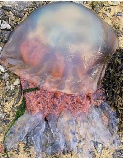 Ці морські істоти називаються бочковими медузами. Їх розміри можуть досягати 90 сантиметрів в діаметрі, а вага — 35 кілограмів. Зазвичай вони живуть у більш глибоких водах, проте у зв'язку з потеплінням вибираються ближче до берега, щоб роздобути їжу.