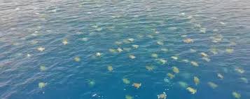 У Мережі показали зняте дроном відео, на якому видно, як 64 тисячі черепах пливуть в океані до одного з островів Великого Бар’єрного рифа для відкладання яєць.