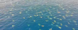 На кадрах біологів видно, як десятки тисяч австралійськких зелених черепах пливуть в океані.