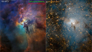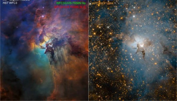 На знімках видно хмари газу та безліч молодих зірок. Саме тому вчені називають туманінсть яслами для нових зірок.