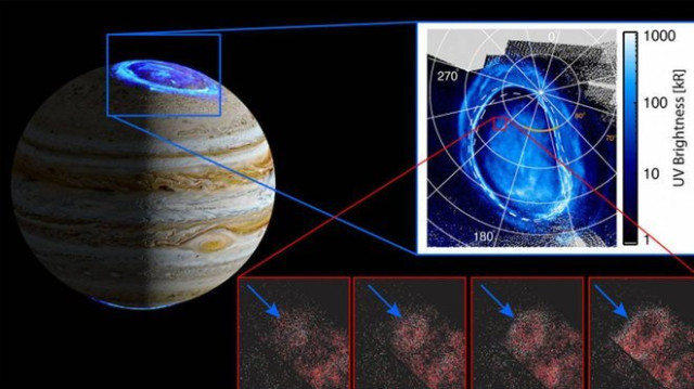 У техаському Південно-західному науково-дослідному інституті (саме тут створили спектрограф для Juno) ці полярні сяйва викликані зарядженими частинками, що виходять від краю масивної магнітосфери Юпітера.