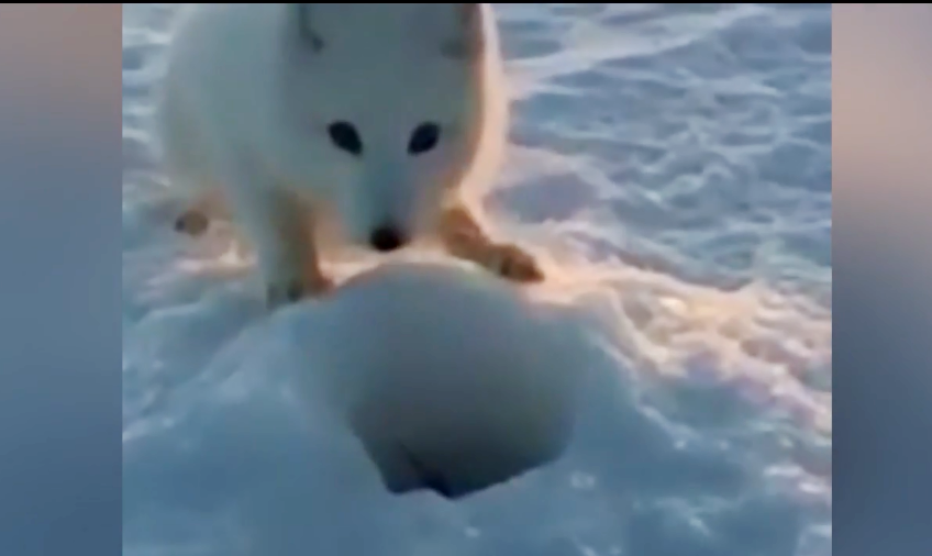 Чоловік намагається відігнати тварину, коли та наближається. Але пухнастий злодій не здається. Знову і знову він підбирається до лунки, аби поцупити рибину. Зрештою песець починає розривати лапками кригу, аби дістатися до здобичі бодай у такий спосіб.