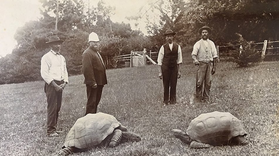 Черепаха Джонатан (зліва), острів Святої Єлени, приблизно 1882-1886 роки