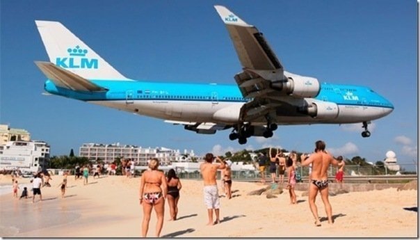 Міжнародний аеропорт Принцеси Юліани на острові Сен-Мартен найбільш завантажений у Карибському регіоні. Для пілотів це справжній тест на профпридатність. Завершується посадка над популярним пляжем Махо. Літаки пролітають на висоті усього десять-двадцять метрів від голів туристів. На пляжі навіть вивісили розклад рейсів, аби кожен охочий зміг заздалегідь приготуватися до близького контакту з багатотонним бортом.