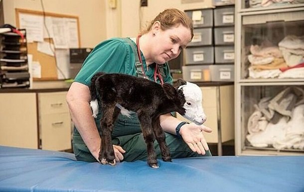 Відомо, що зараз тварина почувається добре. У найближчих планах лікарів – встановити, чи не є теля карликом.
