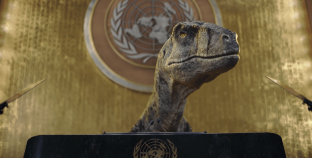 На трибуну ООН піднявся незвичайний доповідач, який закликав замислитись над проблемами змін клімату. У ролику, який був опублікований на каналі Програми розвитку ООН на YouTube, з'явився динозавр, що говорить, який закликав людство відмовитися від шляху до вимирання.