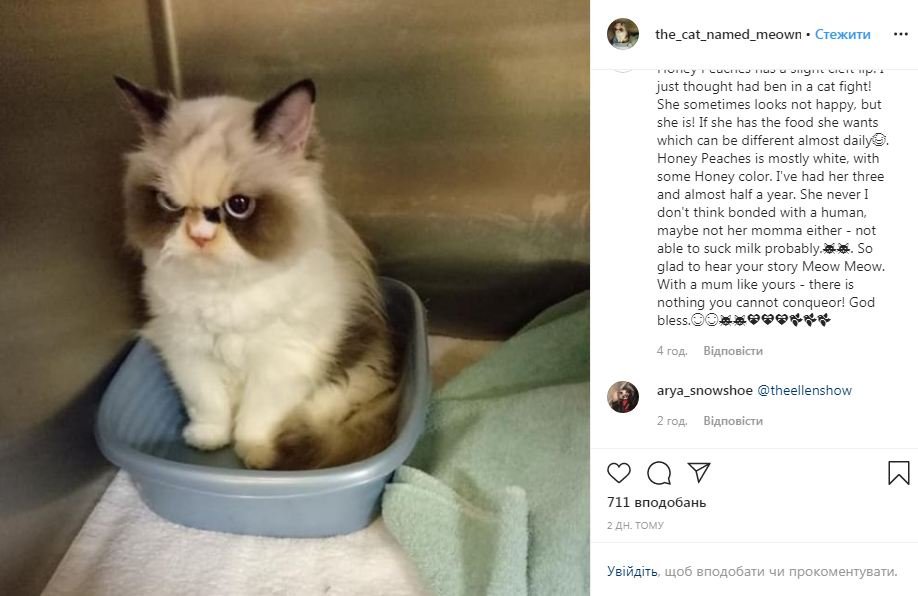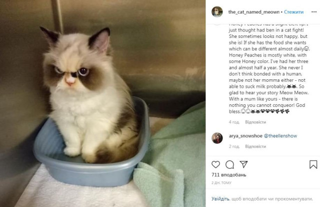 Дівчина розповіла, що побачила Мяу Мяу у зоомагазині, коли тій було 10 місяців.