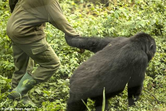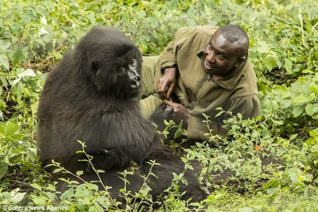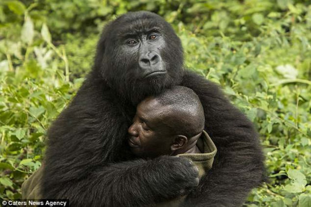 Фотограф із Ботсвани Джеймс Гіффорд сфотографував чоловіка під час спілкування з мавпою. Місцеві самиці горил ставляться до Андре, як до вожака зграї, передає Gazeta.ua.