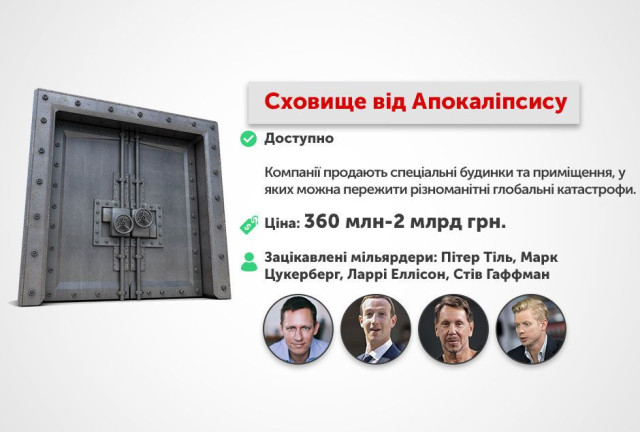 Кінець світу може мати різний вигляд – можливо, крах світової економіки призведе до всесвітньої анархії, можливо, пандемія винищить населення Землі. Параноїдальним це може здатись лише тому, хто не володіє кількома мільярдами.