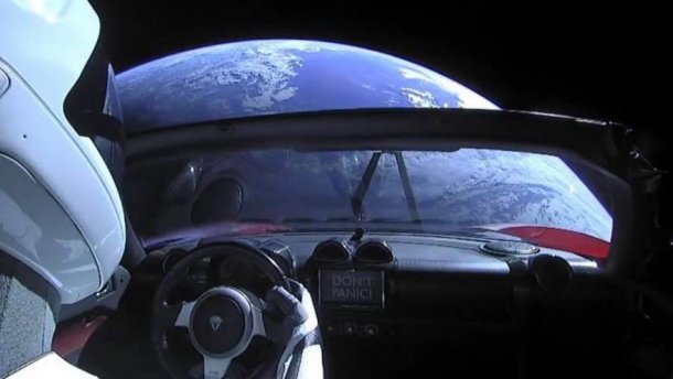 Поки на Землі вирували пристрасті, чувак сидів собі спокійно у червоному родстері Tesla, праву руку тримаючи на кермі, а ліву поклавши на борт. Зовсім так, як робив це попередній хазяїн автівки у спекотній Каліфорнії.