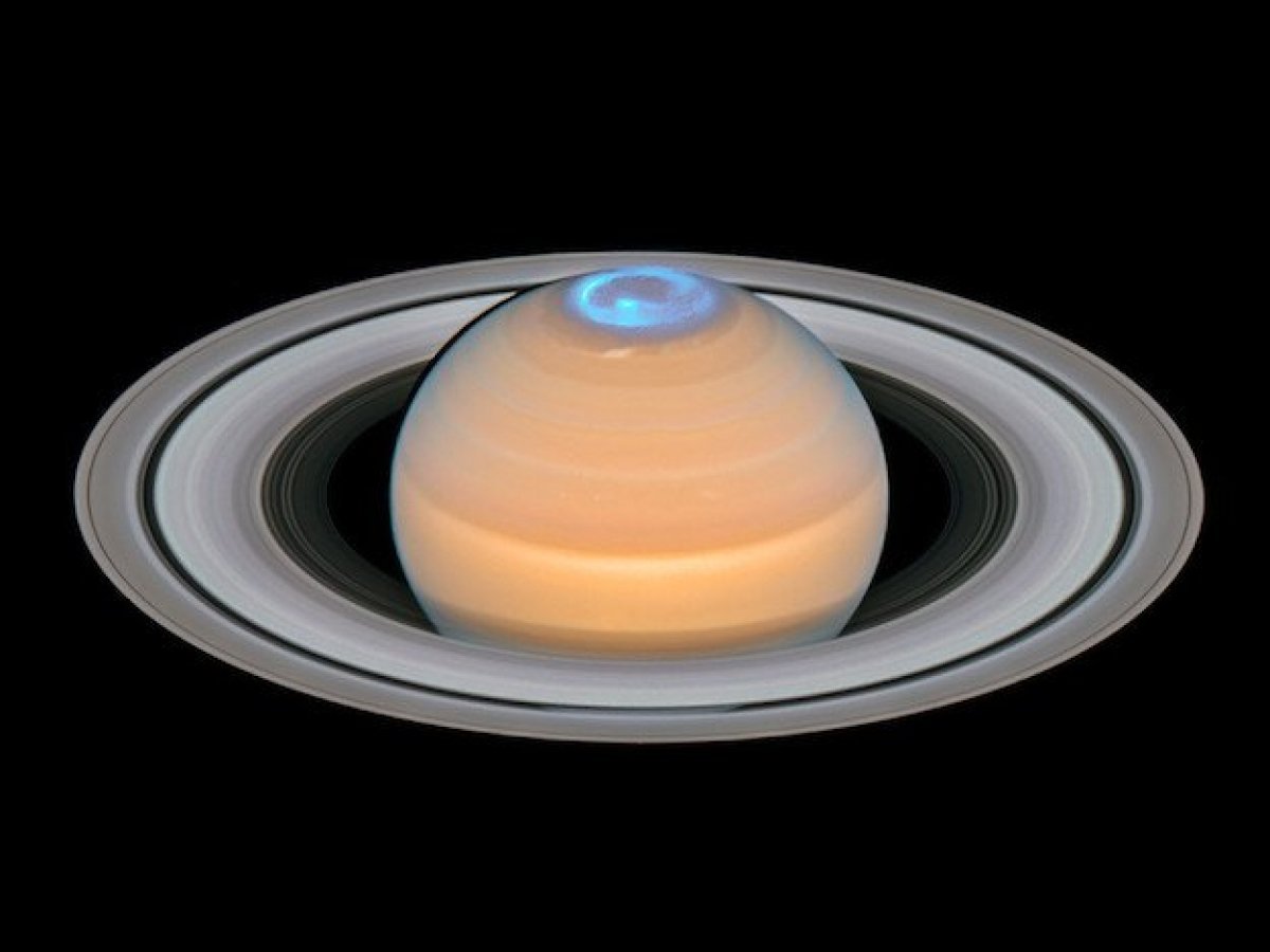 У агентстві зазначають, що зображення, зроблені в ультрафіолетовому світлі, найкраще описують сяйво на північному полюсі Сатурна.