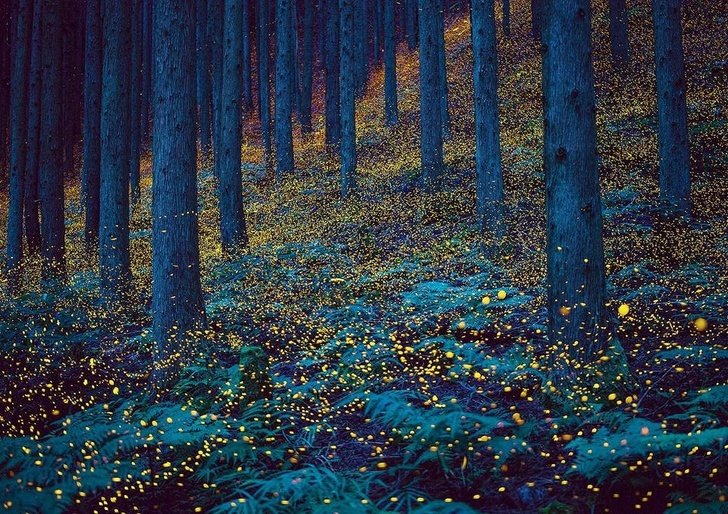 5. На самому початку літа в Японії починається сезон танцюючих світлячків. У давні часи граціозними польотами комах могли милуватися лише вельможі, зате тепер це можемо зробити і ми.