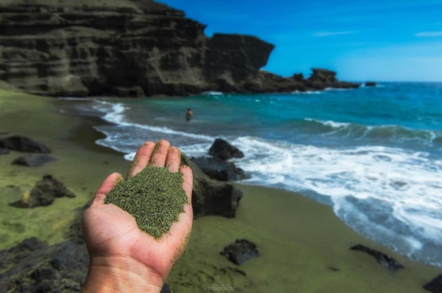 6. Ви тільки погляньте, що коїться на цьому гавайському пляжі: весь пісок позеленів.