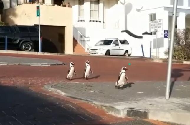 У південноафриканському Кейптауні пінгвіни стали розгулювати порожніми вулицями.
