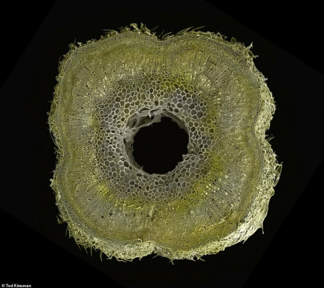 Стебло зрілої рослини у розрізі. Центральна порожнина добре розвинена і її стовбурові.клітини пов'язані зі зберіганням поживних речовин