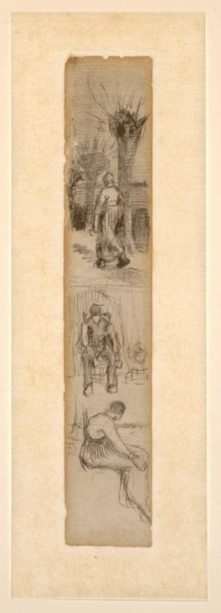 На кожному ескізі зображена одна фігура. Дослідники вважають, що це – селяни, герої книги, які й надихнули Ван Гога. Ймовірно, малюнки зроблені восени 1881 року, коли йому ще не було 30-ти років і він жив у селі Еттен, де мешкали його батьки.