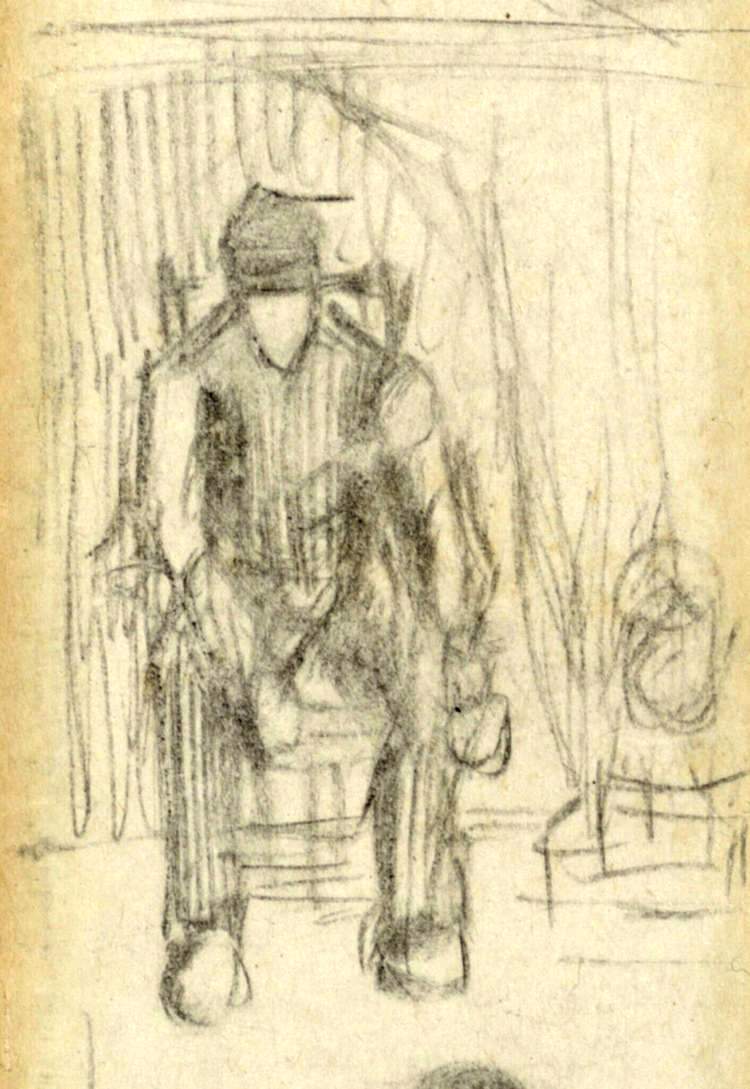 Три малюнки зроблені олівцем і розташовані вертикально на одній смужці паперу. Їх знайшли в копії книги «Історія одного селянина» – ілюстрованого роману Еміля Еркмана та П’єра-Александра Шатріана, який розповідає про Французьку революцію з селянської точки зору.