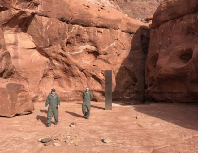 У штаті Юта співробітники Департаменту громадської безпеки під час обльоту помітили в пустелі загадковий металевий моноліт заввишки близько трьох метрів.