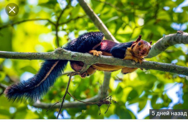 Триколірна малабарська гігантська білка була помічена 39-річним Каушиком Віджаяном в лісі в районі Патханамітта.